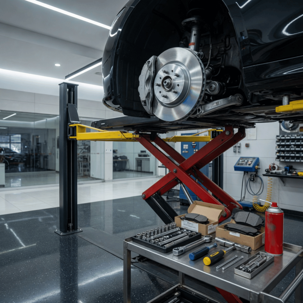 A typical front or rear brake pad replacement takes 60 to 90 minutes per axle at the RapidFix workshop. If rotors also need skimming or replacing, the full job takes 2 to 3 hours. Four-wheel replacement is usually completed within one workshop session.
